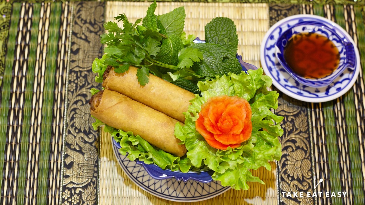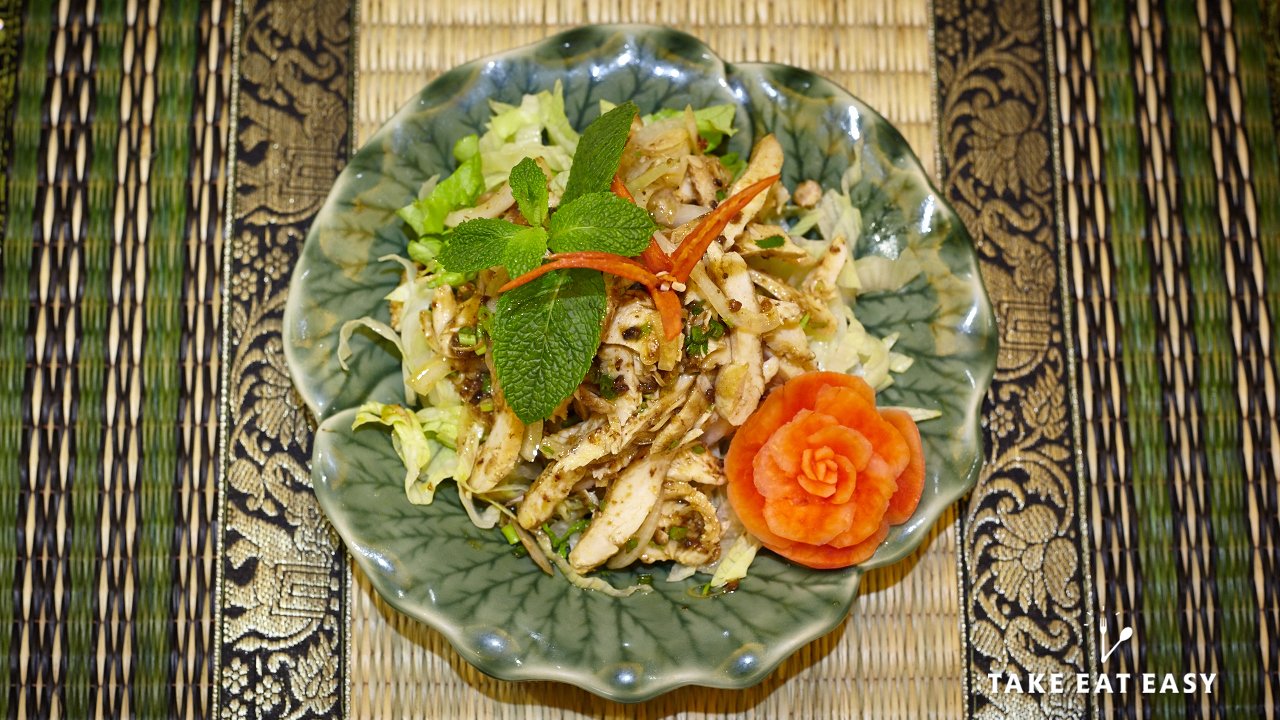 Salade d’ananas, crevettes, poulet, noix de coco grillé